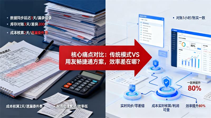 常州中小制造企业的业财管理痛点高度集中,我们从数据同步、库存对账、成本核算、税务处理四大核心场景,带大家看看传统模式和用友畅捷通方案的效率差距: