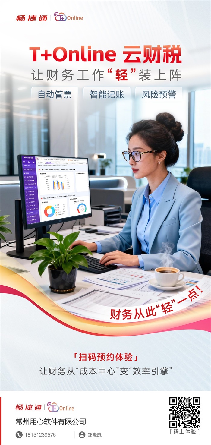 正如宣传画面中那位从容操作的职业财务人员一样,使用T+Online后,财务部门将从繁琐的“成本中心”,转变为驱动企业效率的“效率引擎”。财务工作真正实现“轻”一点,让财务人能有更多精力投入于财务分析和决策支持。
